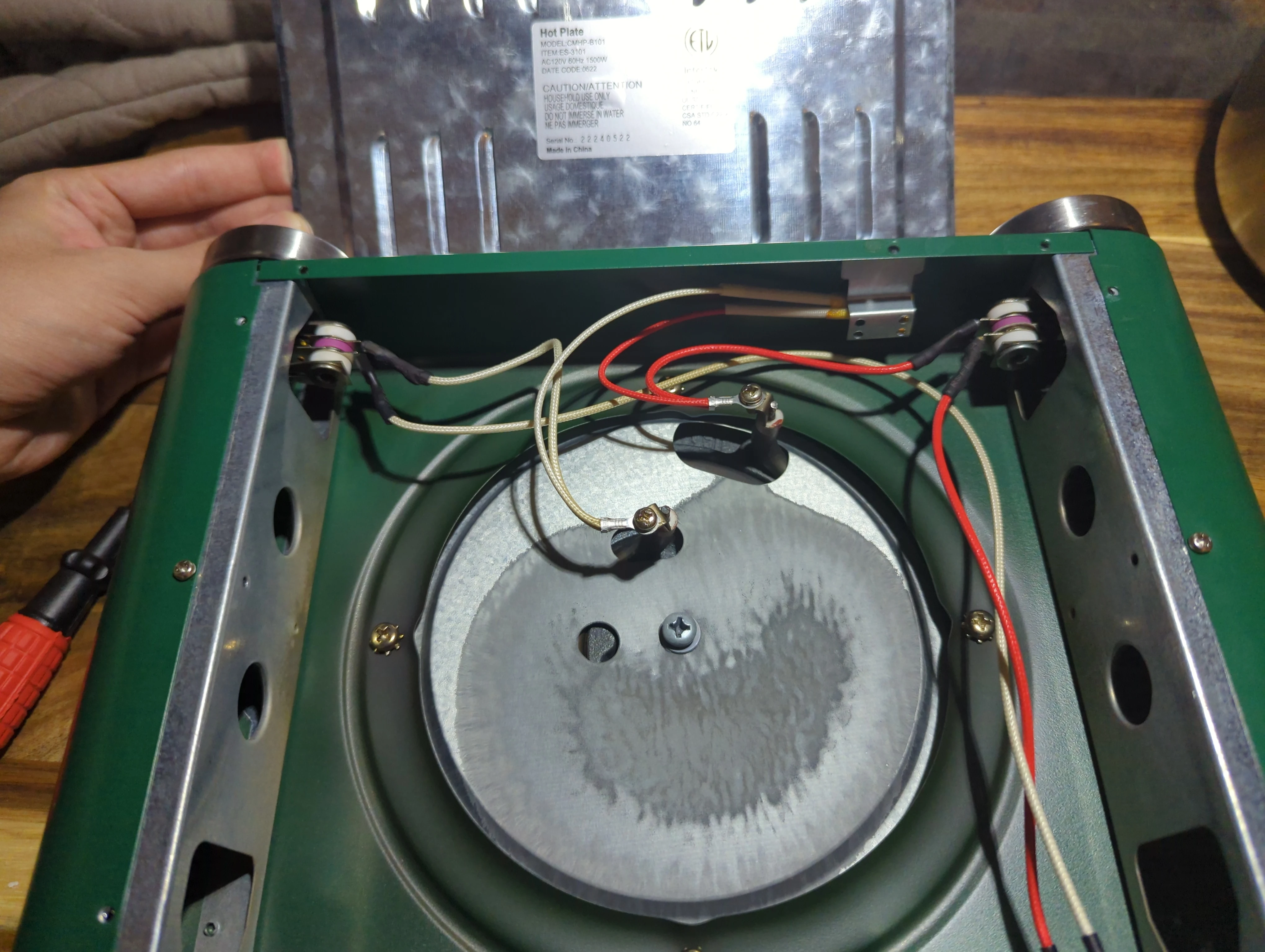 The burning plastic smell seems to be coming from the plate, even when it is dissassembled like this, i can smell it from the centre.