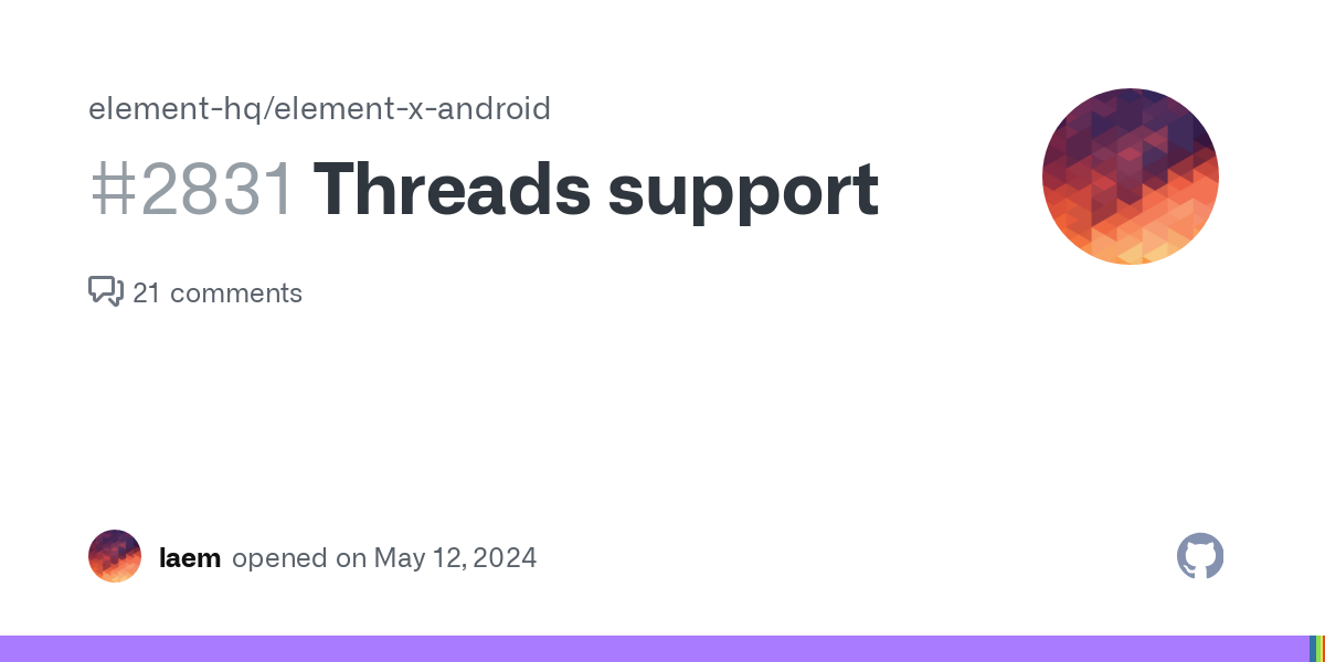 Blaze (he/him)@lemmy.zip to Matrix@lemmy.ml · 1 year agoI wanted to switch to Element X, but then noticed threads are not well supported.github.comexternal-linkmessage-square13linkfedilinkarrow-up120arrow-down10