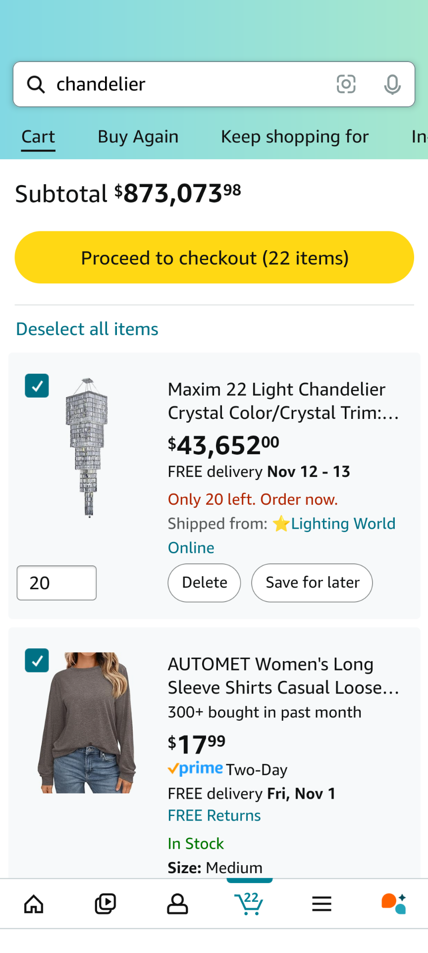 You have $875k worth of stuff in your cart? Imagine accidentally clicking 1 click checkout or something.