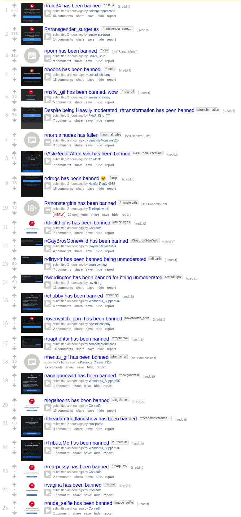 Something big is happening, as Reddit seems to have purged literally every NSFW sub they know. Reason is always “unmoderated” despite some of the banned subreddits being fully moderated.