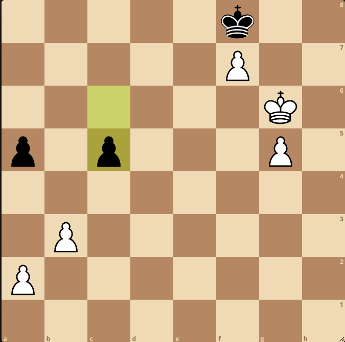 1.a4 c4 2.bxc4 Ke7 3.Kg7