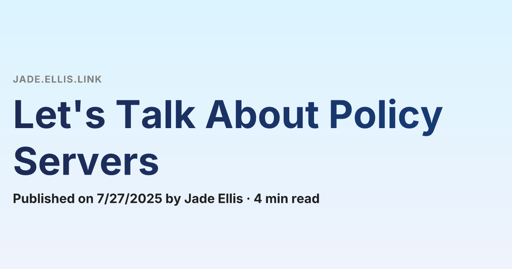 Jade@programming.dev to Matrix@lemmy.mlEnglish · 9 months agoLet's Talk About Policy Serversjade.ellis.linkexternal-linkmessage-square0linkfedilinkarrow-up19arrow-down10