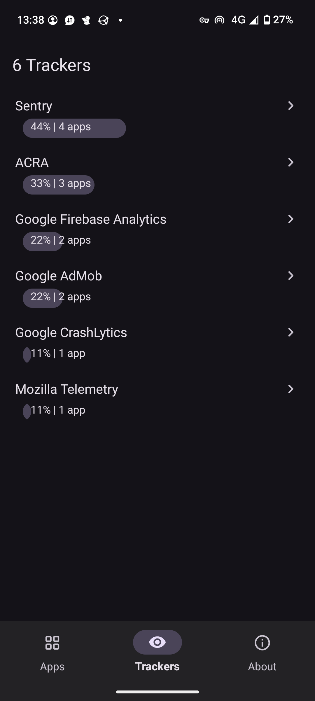 People have mentioned NextDNS (just a DNS setting) and TrackerControl (connects as a VPN on android/grapheneos)