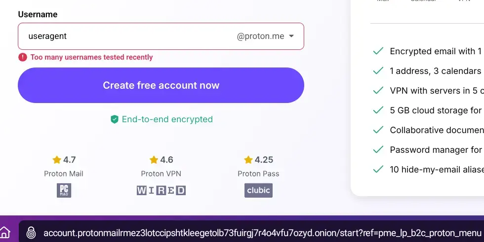so now proton completely blocking account creation through their onion adress? I have standard protection, javascript enabled. Time to swith for those who use this service as they are ditching tor and switzerland?