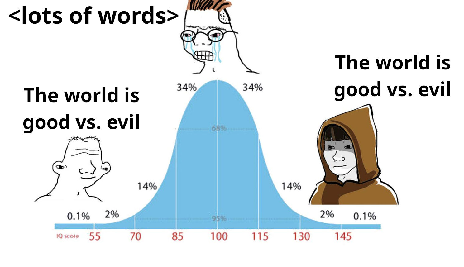 minus-squareantsu@discuss.tchncs.delinkfedilinkarrow-up4·5 months ago“Good” is whoever ends up winning at the end.