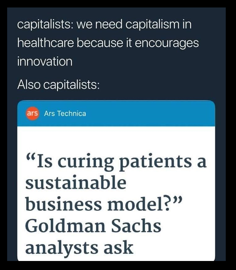 UltraGiGaGigantic@lemmy.ml to shitposting@lemmy.mlEnglish · 1 month agoCapitalism is a terminal illness for humanitylemmy.mlimagemessage-square11linkfedilinkarrow-up1221arrow-down12