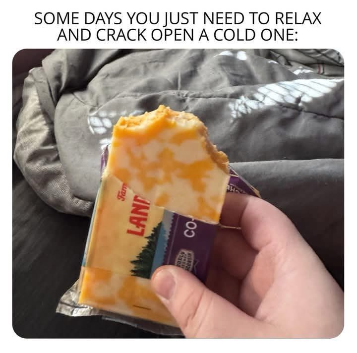 gov’t cheese would be the exact opposite; but still really satisfying somehow… but ONLY when it’s freshly opened, before it dries out and gets harder than a brick. lol