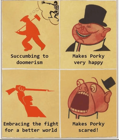 While it’s true that elections being cancelled is fearmongering, elections can’t stop fascism, because fascism is caused by capitalism in decay. Only socialism can stop fascism for good, like the Red Army crushing the Nazis.