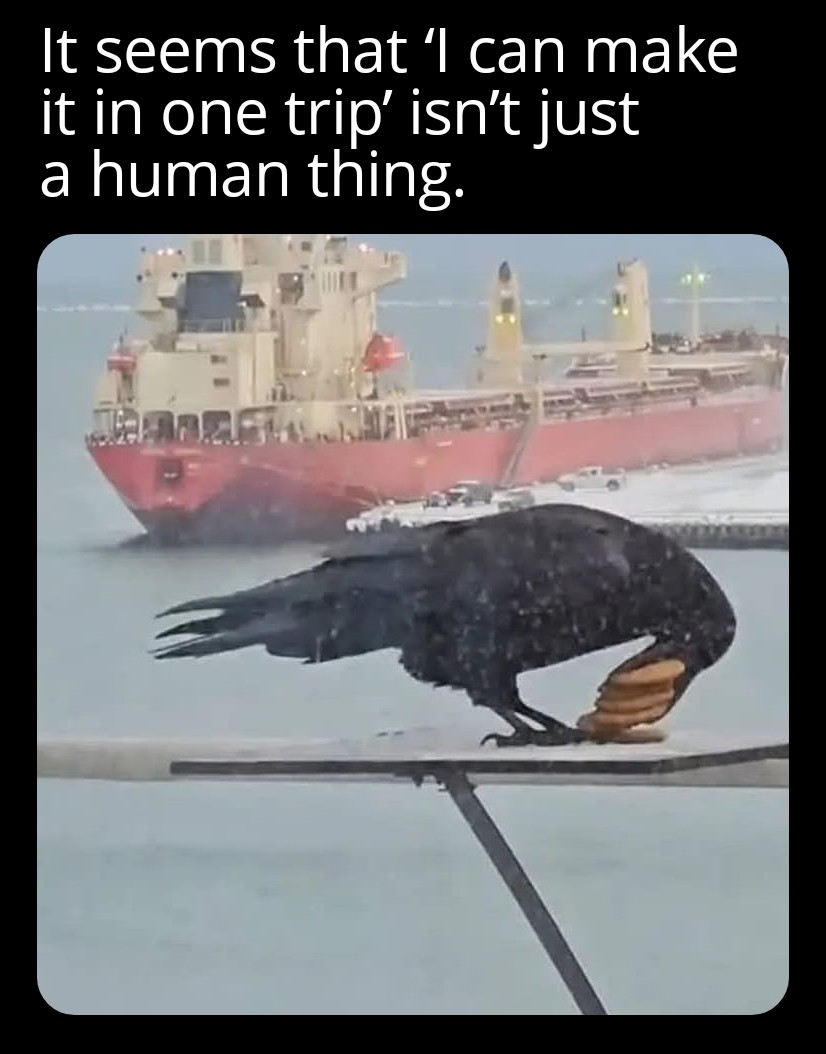 Poor crow forgot their bags at home.