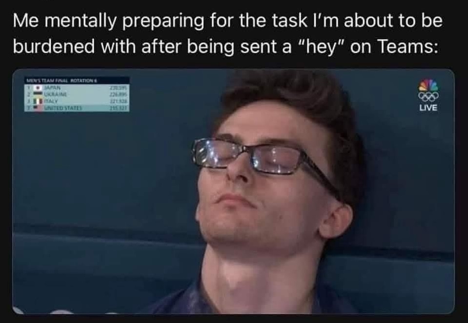 I have no reason to engage with anyone when I am not at work. If you need something, it can wait until 7:01 Monday morning. If it’s urgent, you shouldn’t be talking to me. If it’s an emergency only I am capable of solving, then not only is the company fucked in many ways, but you should have started with a concise paragraph of what is needed.