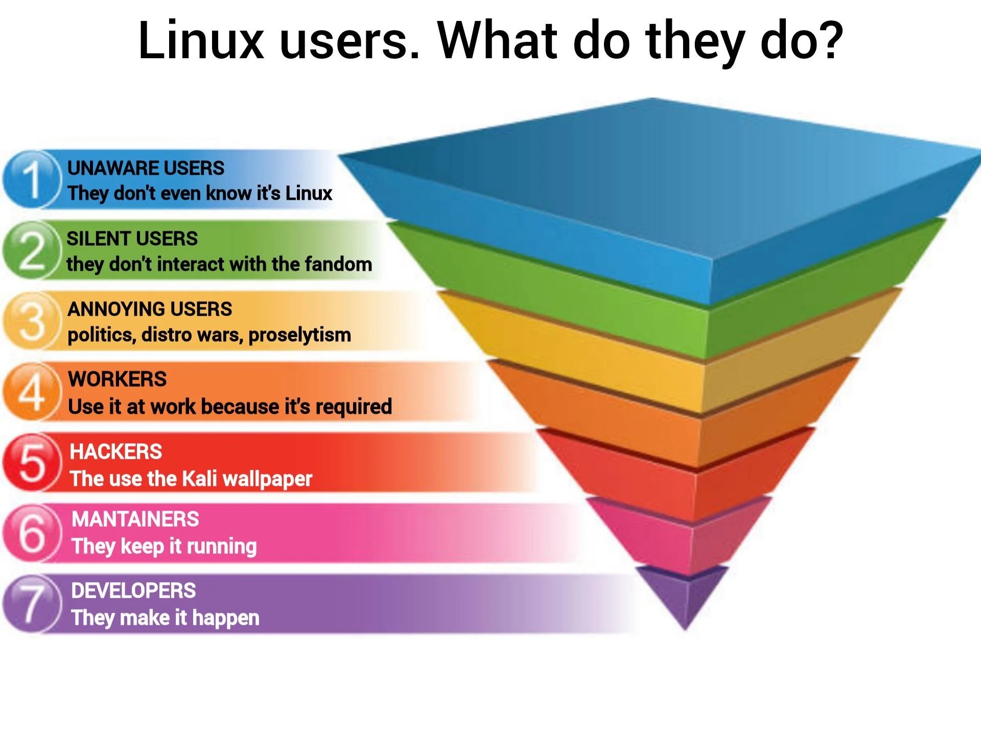 Personally I’m somewhere between 2 and 3 - I’ll engage in the distro sectarianism for the bit, sometimes on the side of one that isn’t even what I actually use, but I hate being an annoying proselytiser of anything, I hate dealing with the broad tent politics of the FOSS world, and I’m happy to engage with the community positively but I hate being any of the nasty stereotypes.