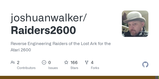 ☆ Yσɠƚԋσʂ ☆@lemmy.ml to General Programming Discussion@lemmy.mlEnglish · 30 days agoReverse Engineering Raiders of the Lost Ark for the Atari 2600github.comexternal-linkmessage-square0linkfedilinkarrow-up15arrow-down10