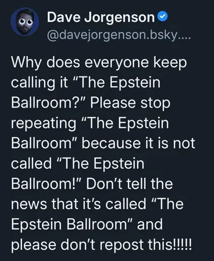 Sgt_choke_n_stroke@lemmy.world to Memes@lemmy.ml · 26 days agoTrumps opening up the Epstein ballroomlemmy.mlimagemessage-square7linkfedilinkarrow-up1479arrow-down12