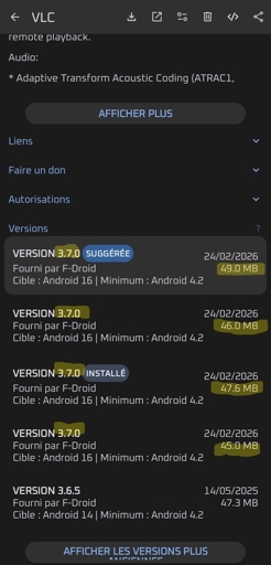 I am getting notifications that updates are available for a bunch of apps, but the version number is the same. Update fails. Package size differs. Screenshot is an example with VLC. I cleared cache, even all data+reinstall, tried other clients (droidify) but the behaviour is the same.