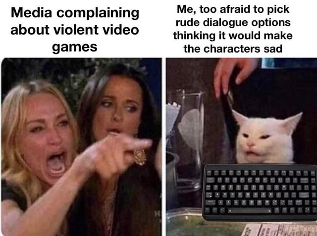 There’s some games where it might actually matter, but my casual gamer self never plays those because with 2 to 3 hours a week to play I can’t keep up with all the details of every interaction I’ve taken in the game.