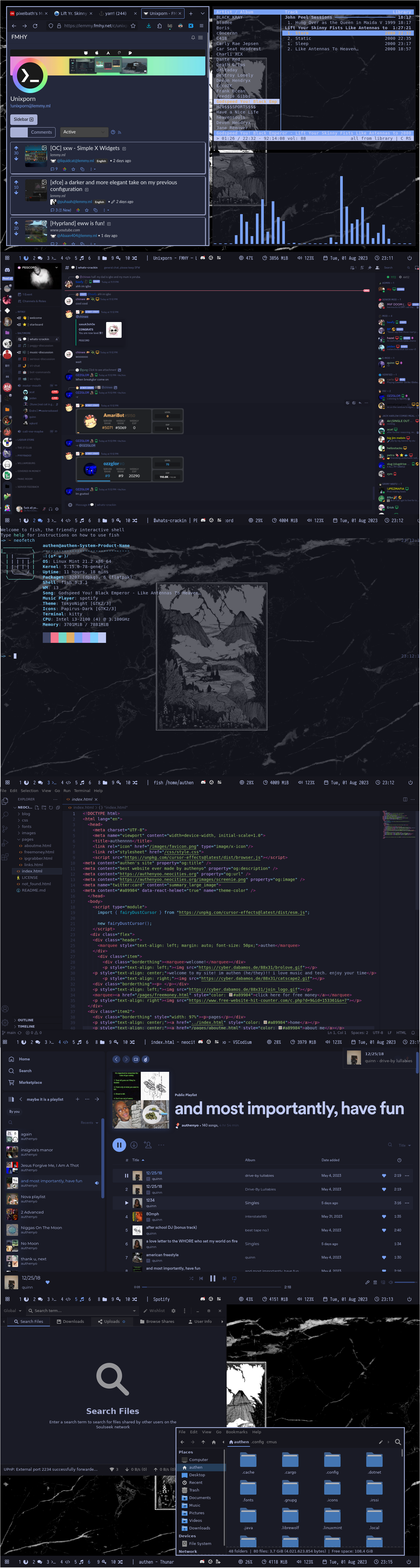 minus-squareauthenyo@lemmy.fmhy.netOPlinkfedilinkarrow-up4·2 years agocomes from https://github.com/stronk-dev/Tokyo-Night-Linux/, helped me a lot in this rice