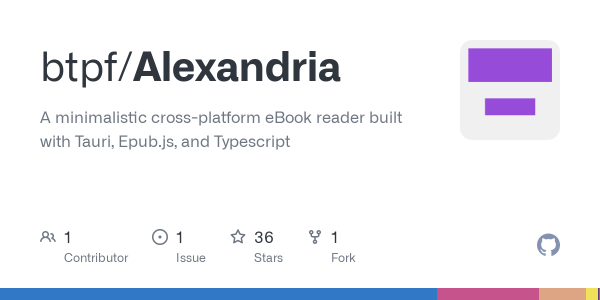 Just a heads up though, there’s an existing server/client app combo also named Alexandria commonly used in public schools and libraries (in the US anyway). It’s more of a book inventory and check-out system, but the shared name for a related app could still cause some confusion, and might prevent schools and libraries from utilizing your helpful tool.